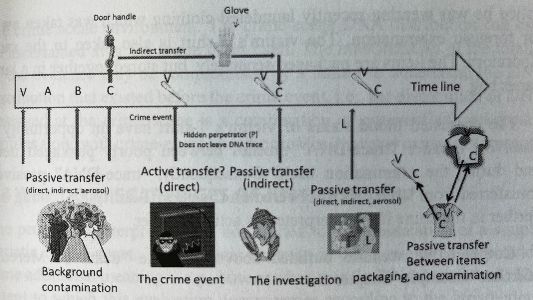 Experimental data has also demonstrated that neither the quantity of DNA recovered nor the quality of the DNA profile obtained can be reliably used to determine the nature of deposition, i.e., direct or indirect DNA transfer. This is due to the transfer, persistence, and recovery of trace DNA on/from persons and/or objects being a highly complex and multifactorial process, as outlined in the image above.